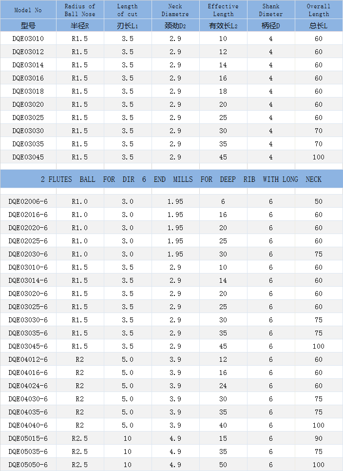 二刃球頭銑刀-石墨球刀